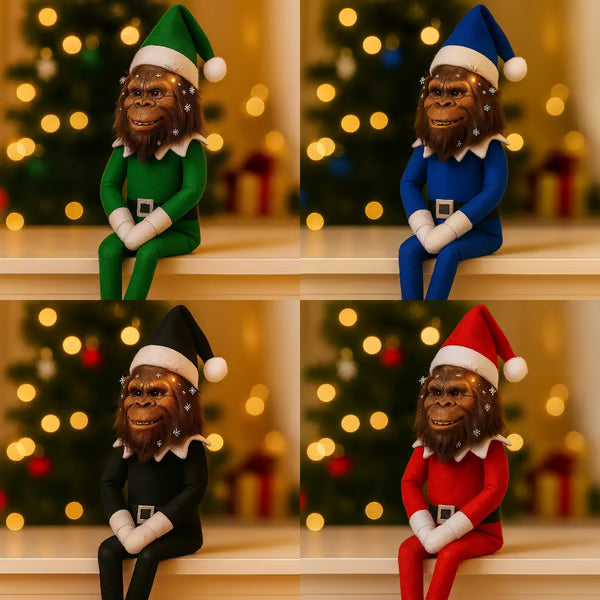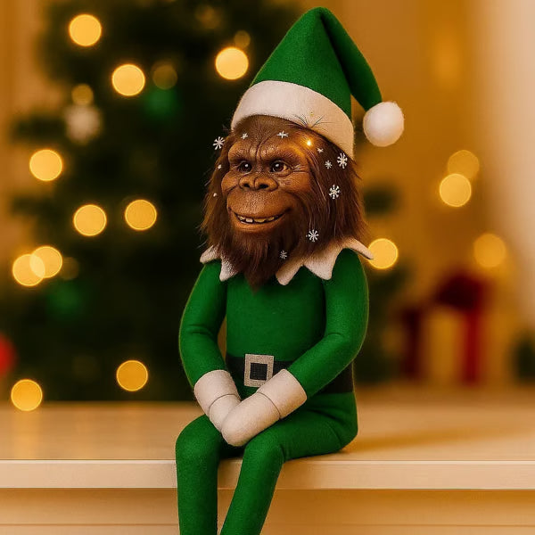 ππ Designed as a whimsical Bigfoot in classic Christmas elf attire, complete with green outfit, white trim, a top hat, and a cheerful pom-pom! π©πβοΈ
