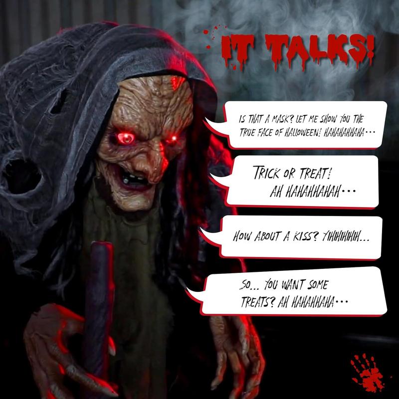 Spice up your Halloween with this life-size animatronic witch—perfect for scaring up fun indoors or outdoors!